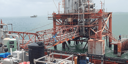 The offshore platform consists of a single/ mono pile conductor substructure, topside well deck, boat landing structure and riser guard, located offshore Southwest Trinidad.